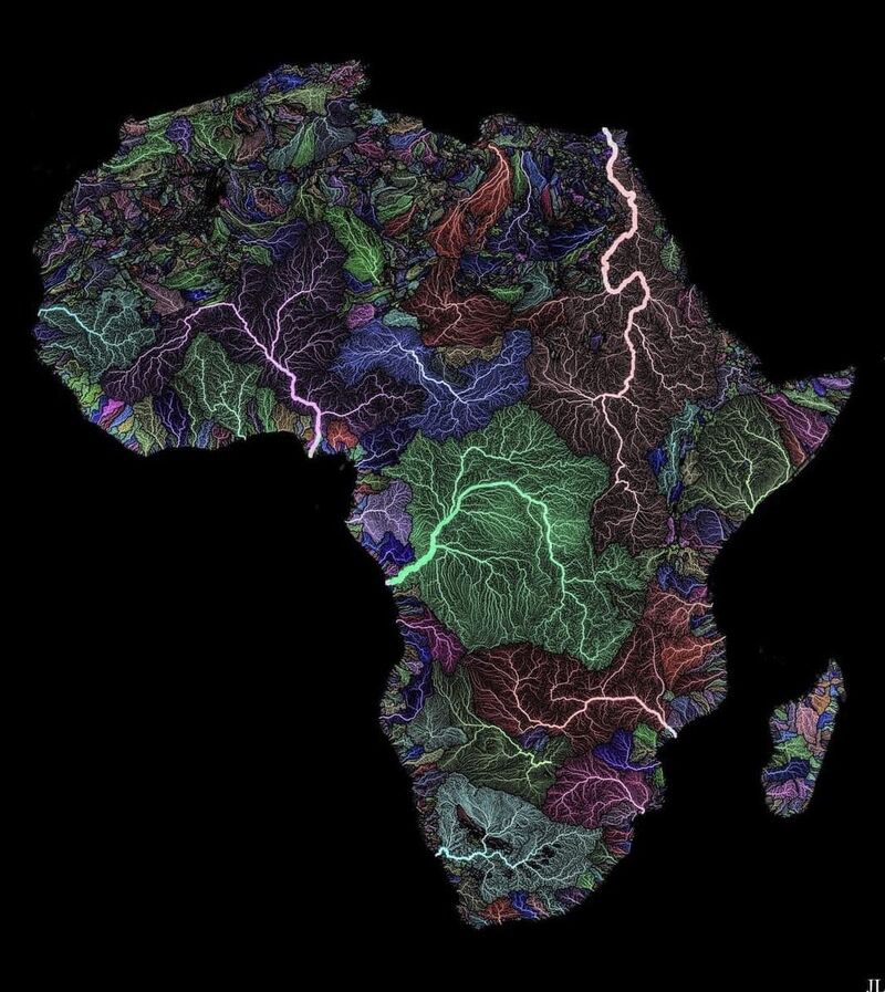 This would be an interesting application for a machine learning system to model the dynamical symmetries of recursive topographical shaping. The point? Imagine that same image as a time-lapse cartography of adaptive fluid dynamics, evolving over time, like flickering lightning bolts slowly settling down to an optimal solution in this context.